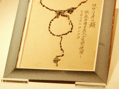 Here are some photos taken from the museum of Takashi Nagai in Nagasaki showing the rosary of Nagai’s wife, Midori.