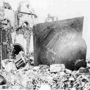 Above photo of the Cathedral of Urukami in Nagasaki, Japan after the atomic bombing of August 9, 1945.