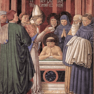Painting of the Baptism of St. Augustine by Benozzo Gozzoli